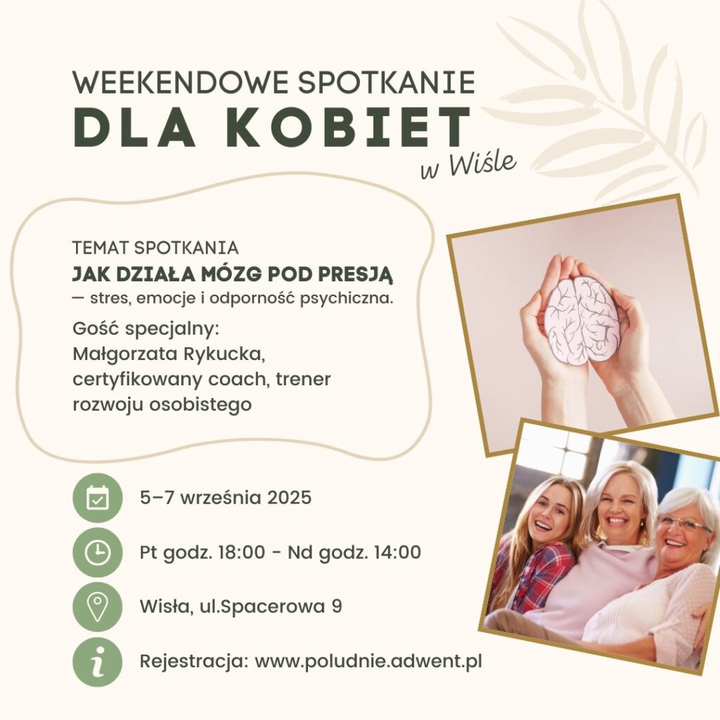 Zapraszamy na, trzecie w tym roku, weekendowe spotkanie kobiet. Odbędzie się ono w Wiśle w dniach od 5 do 7 września. Będzie czas na rozmowy, dzielenie się doświadczeniami, wspólne studium Biblii i modlitwę oraz inspirujące warsztaty.
